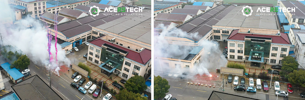A las 8:00 a. m. en punto, los empleados se reunieron frente a la fábrica de ACERETECH, creando un ambiente animado. Con una orden, se encendieron los fuegos artificiales y petardos preparados.