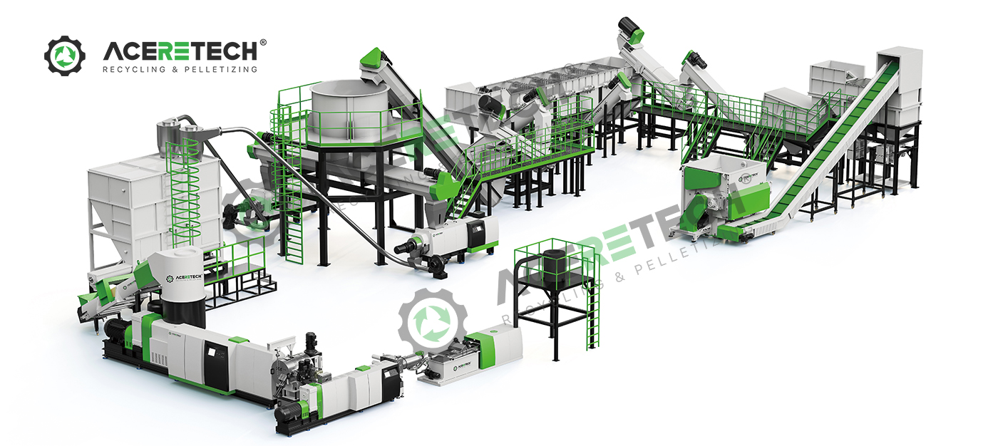 Оборудование для переработки пластика — это комплексная система, предназначенная для преобразования пластиковых отходов (таких как пленки, ПЭТ-бутылки, жесткий пластик и другие материалы) в гранулы, пригодные для повторного использования. Основной принцип работы системы заключается в последовательном выполнении ряда ключевых этапов — включая предварительное измельчение (шредирование), дробление, мойку, обезвоживание и грануляцию, — что позволяет обеспечить эффективное восстановление и утилизацию пластиковых материалов.