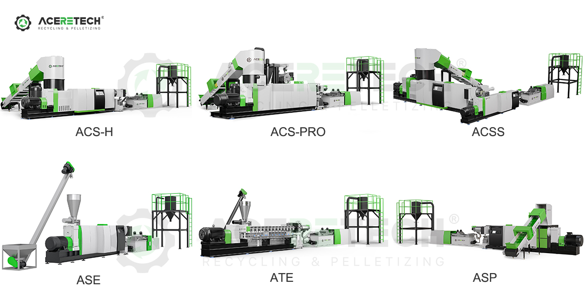 ACERETECH 精心打造了一系列高性能塑料造粒机,以满足不同回收场景的多样化需求,涵盖从基础回收到精细改性的广泛应用。以下是我们部分主要产品及其特点和适用材料: